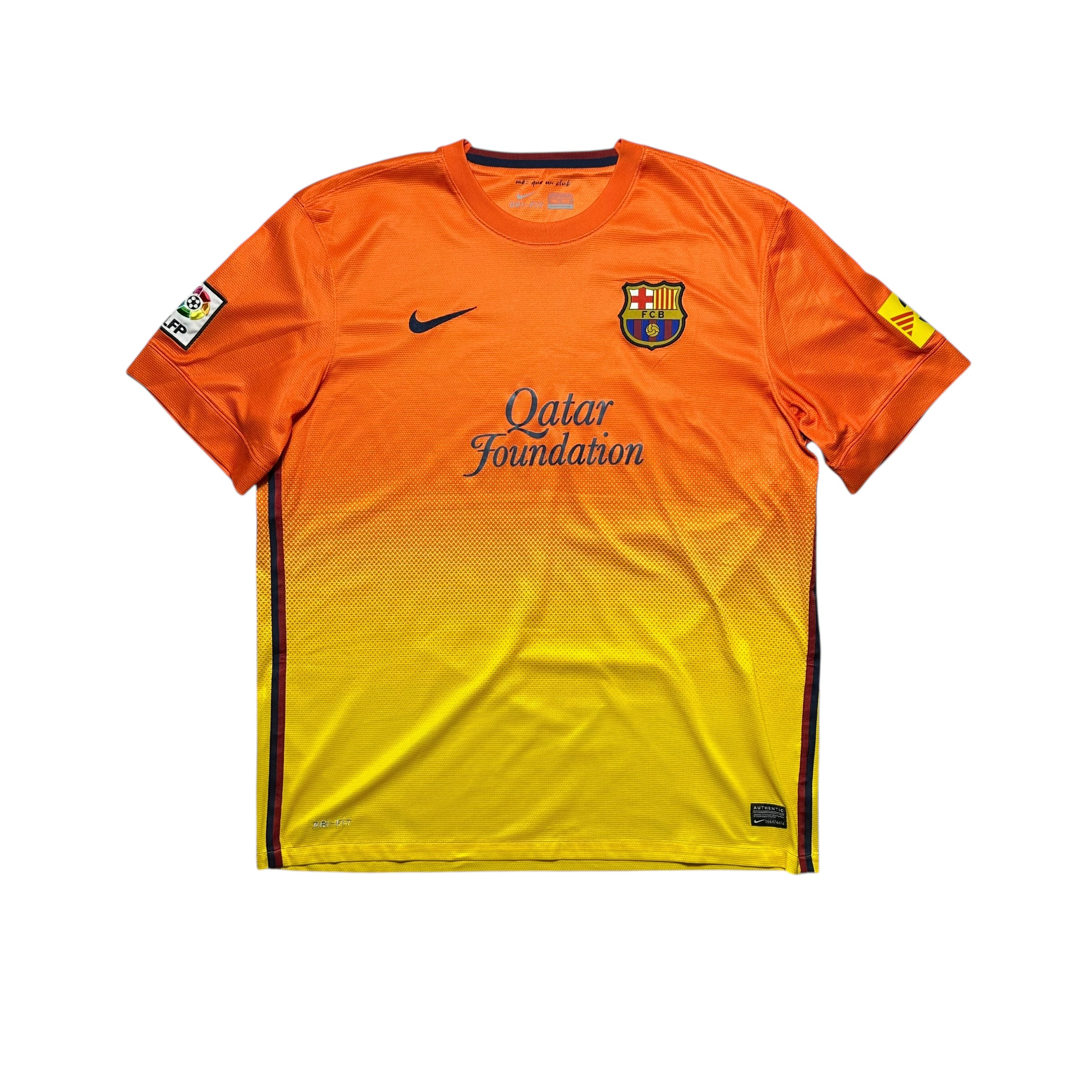 Sezon 2012/13 był dla Barcelony rekordowy ligowo. Drużyna prowadzona przez Tito Vilanovę zdobyła mistrzostwo Hiszpanii z dorobkiem 100 punktów, dominując La Ligę od pierwszej do ostatniej kolejki. Pomarańczowy komplet był jednym z najbardziej rozpoznawalnych symboli tej kampanii wyjazdowej.
