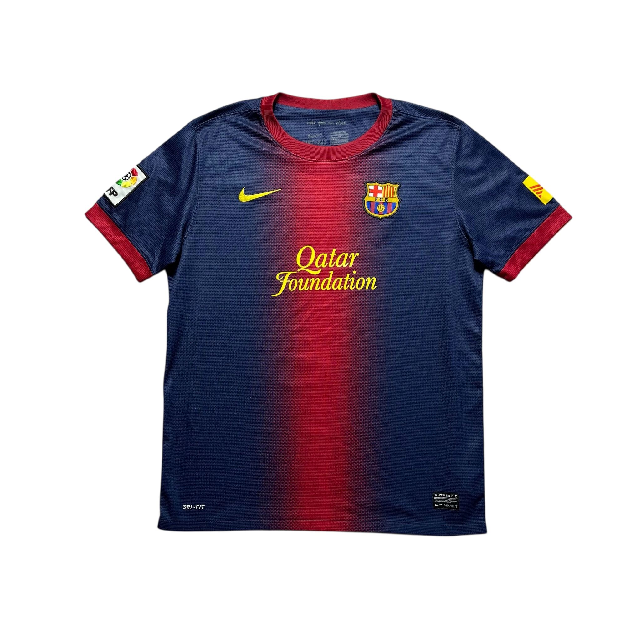 Domowa koszulka FC Barcelony z sezonu 2012/2013 to model z jednego z najbardziej dominujących sezonów w historii La Liga. Zespół zdobył mistrzostwo Hiszpanii z dorobkiem 100 punktów. Lionel Messi rozegrał fenomenalne rozgrywki, wspierany przez Andrésa Iniestę, Xaviego, Davida Villę oraz Daniego Alvesa. Kultowy efekt gradientu i historyczne osiągnięcia sprawiają, że ten model jest szczególnie ceniony przez kolekcjonerów.