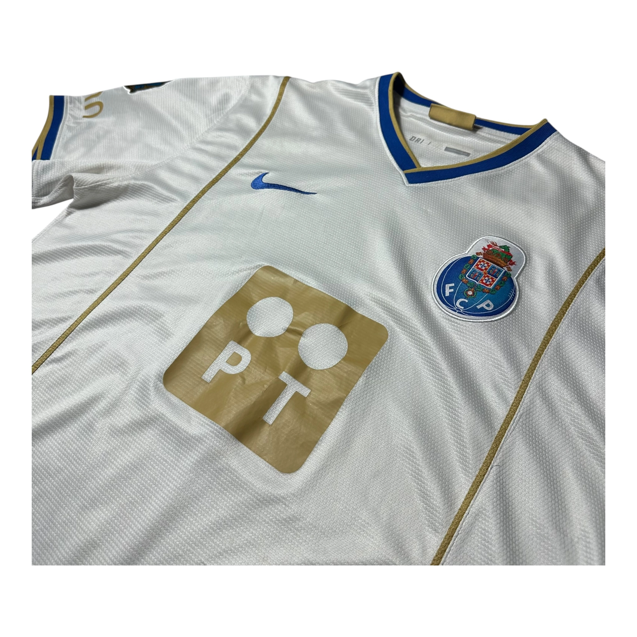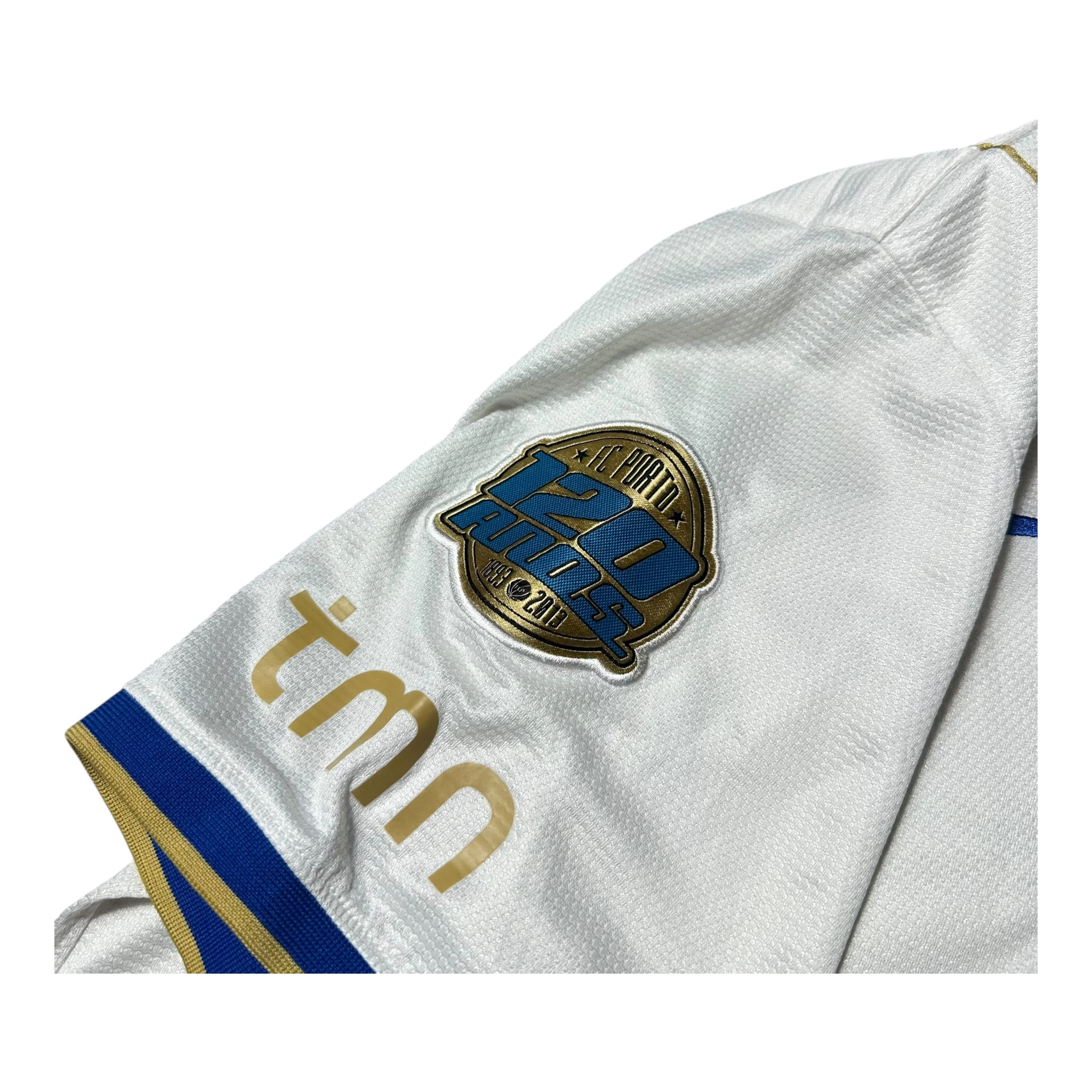 Oryginalna trzecia koszulka FC Porto z sezonu 2013/2014, wydana z okazji 120-lecia klubu, to jeden z najbardziej wyjątkowych i kolekcjonerskich projektów w historii FC Porto. Model jubileuszowy w biało-złotej kolorystyce stanowi hołd dla tradycji, elegancji i wieloletniej historii „Smoków”.