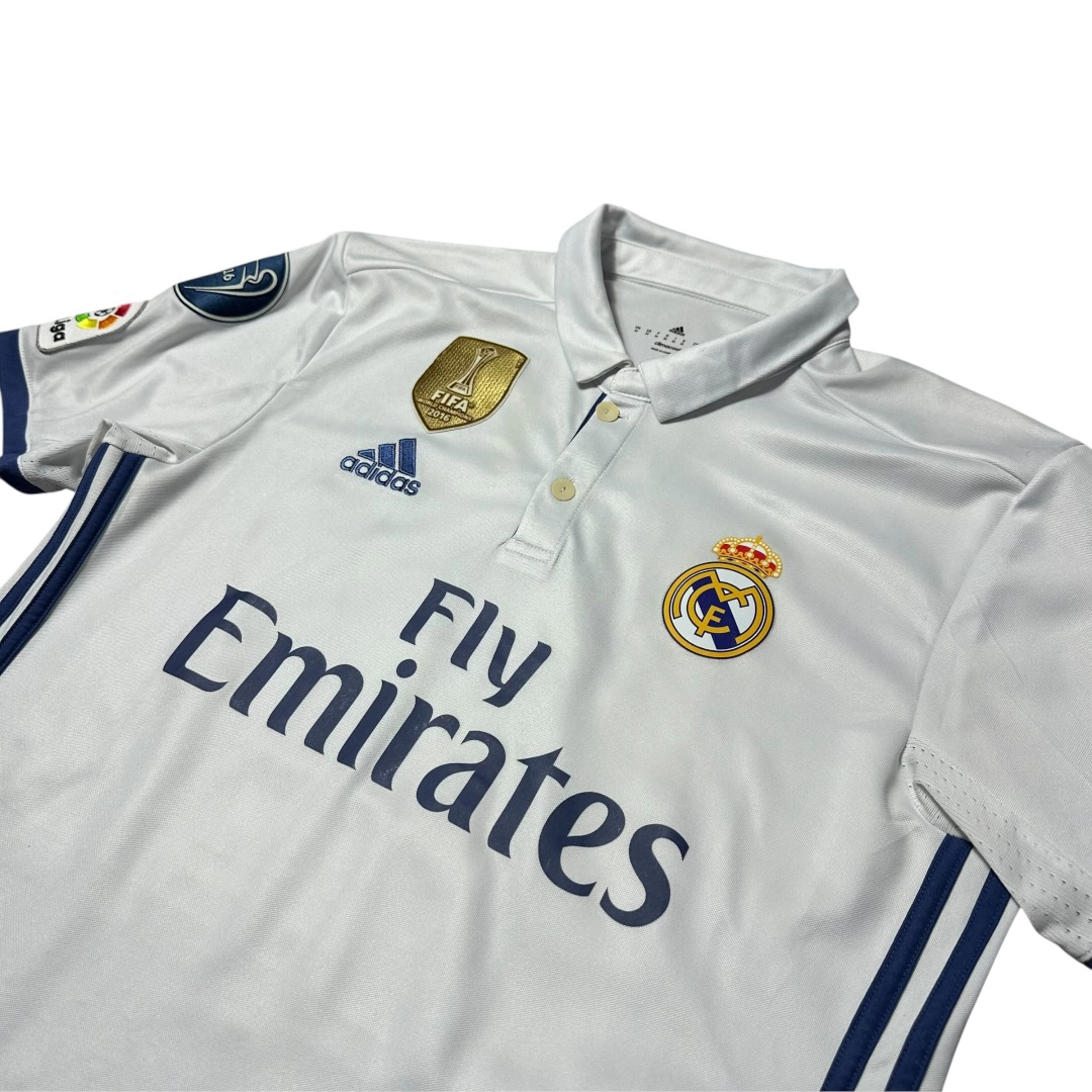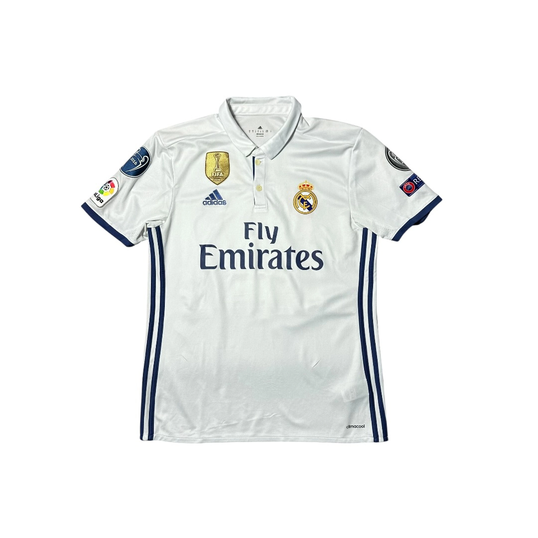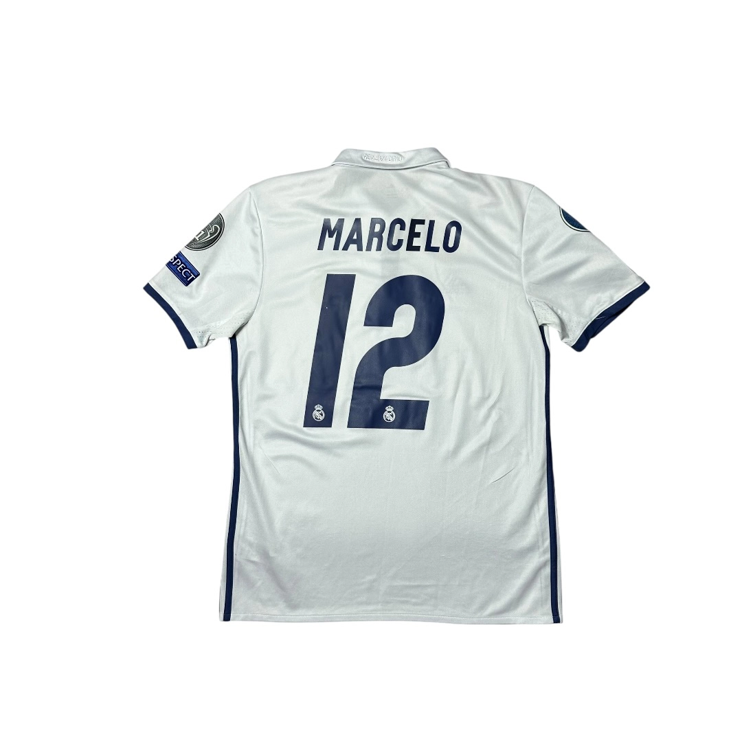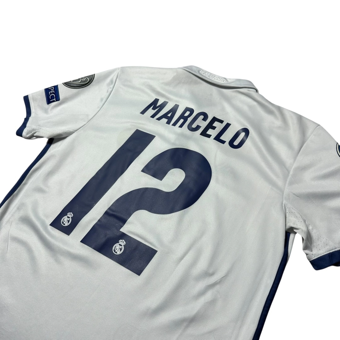 Home Kit Real Madrid 16/17 z nazwiskiem Marcelo to koszulka-symbol jednego z najbardziej dominujących zespołów drugiej dekady XXI wieku. Idealna propozycja dla fanów Realu Madryt, kolekcjonerów koszulek triumfów Ligi Mistrzów oraz miłośników klasycznych modeli adidas.