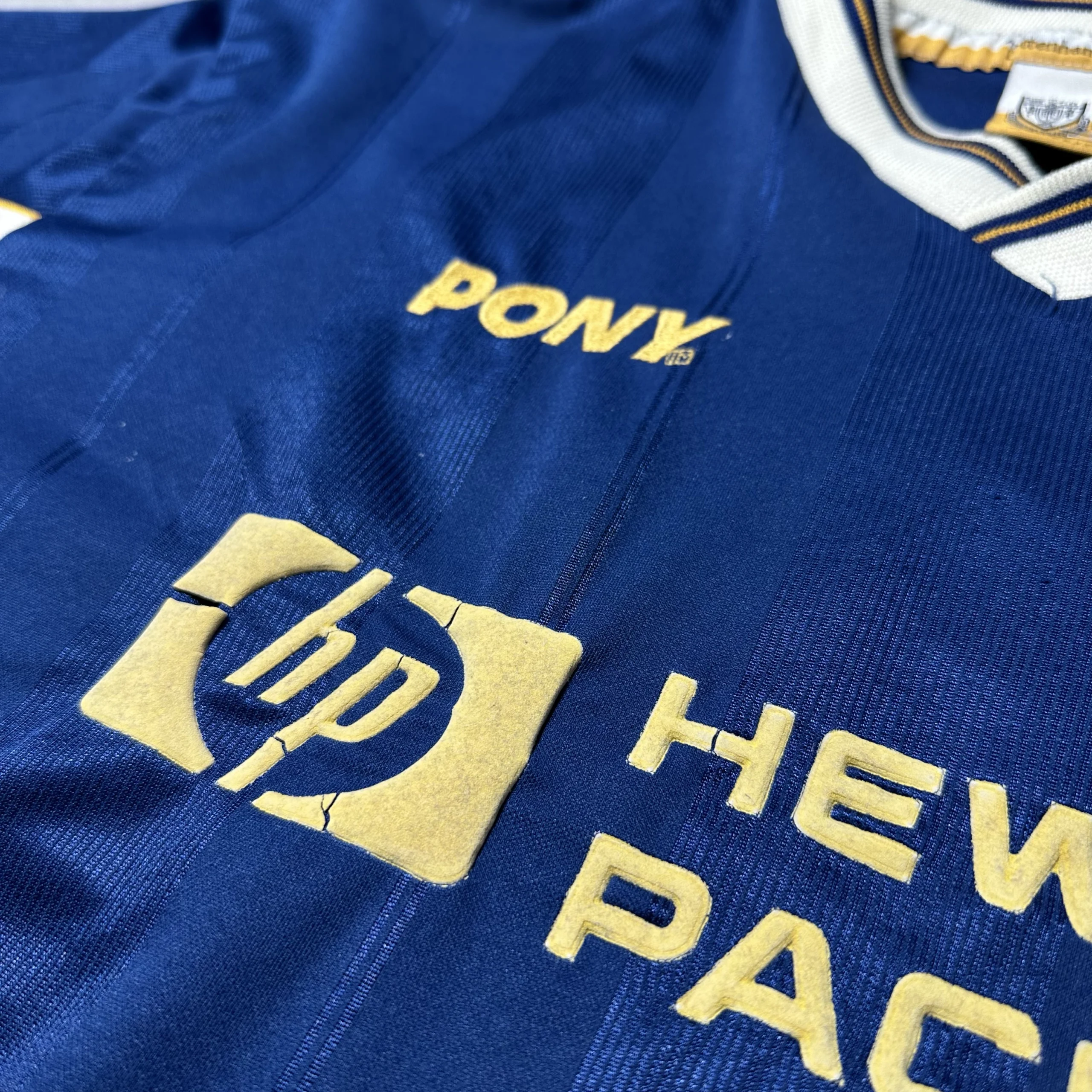 Oryginalna wyjazdowa koszulka Tottenham Hotspur z sezonu 1997/1998 to klasyczny model końcówki lat 90., reprezentujący charakterystyczny styl projektów piłkarskich tamtej epoki i jeden z ciekawszych retro wzorów londyńskiego klubu.